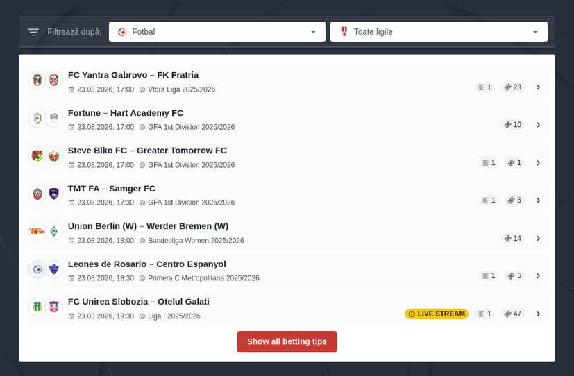 Ponturile pe pariuri pe Liga a II-a cu adevărat valoroase implică o analiză atentă a contextului. Valorifică avantajul acasă amplificat în Liga 2 prin pariuri pe handicap asiatic (+0.5, +0.75) pentru subestimatele locale sau DNB (Draw No Bet). Egalul (X) este adesea subestimat în derby-uri sau meciuri între echipe de forță similară, oferind cote atractive. Evită echipele cu probleme financiare grave sau schimbări recente masive de lot/antrenor, deoarece instabilitatea este mare.