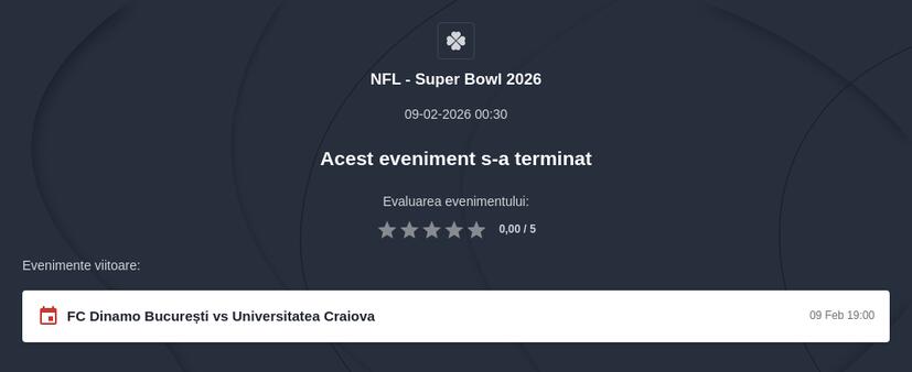 Vedeți mai multe cote și piețe pentru Super Bowl 2026 disponibile pe platforma Betano România. Noi v-am pregătit chiar și un cod promo Betano 2026, pentru a beneficia de avantajele bonusurilor în timpul evenimentului.